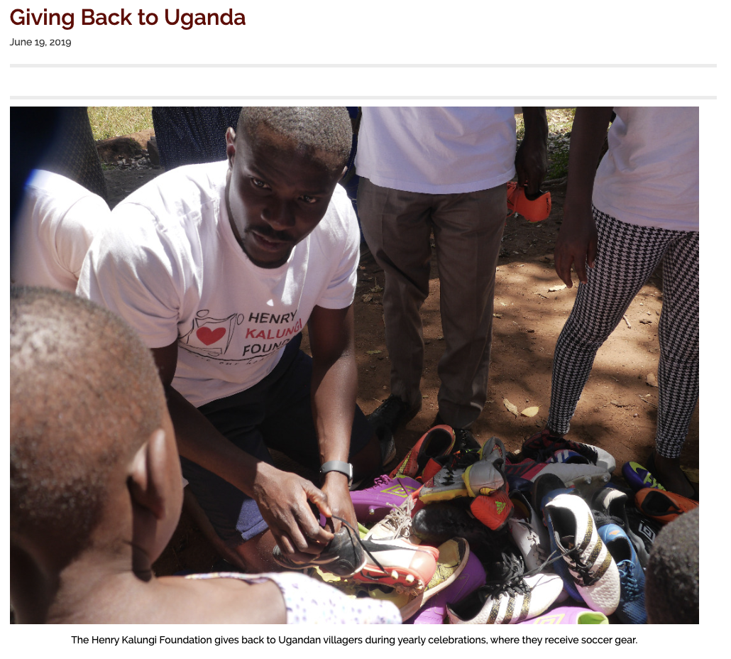 GIVING BACK. Henry Kalungi is Uganda Cranes defender who plays for Charlotte Independence in the the US. America has been home since 2006, for the 31-year-old. From owning two pairs of shorts, Kalungi shares his achievements with others. In 2015, with his wife Jacqueline Kalungi and …